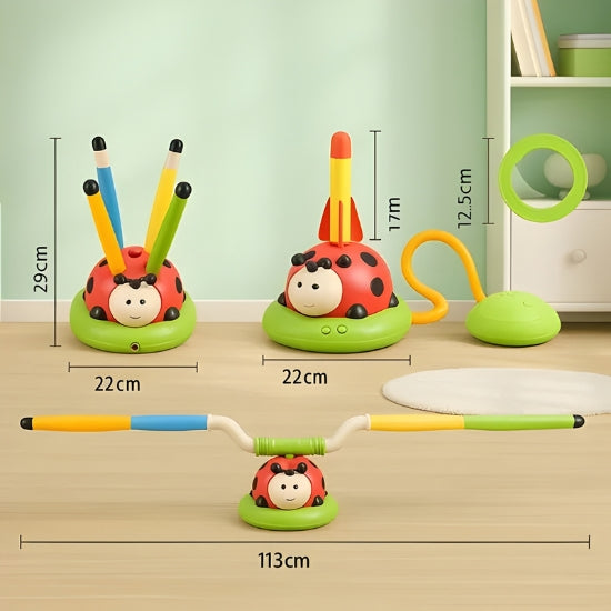 🔄 Pula Corda Automática – A joaninha gira a corda sozinha e as crianças pulam no ritmo.