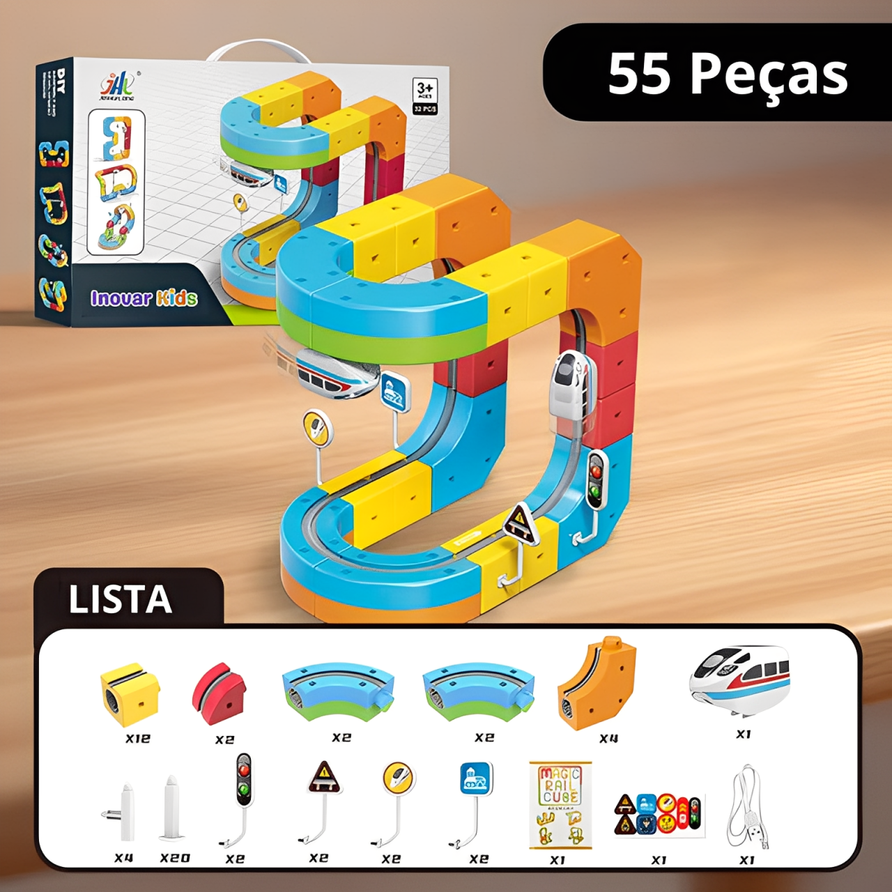 O MagicTrain não é apenas uma pista de carrinho. Ele é um jogo interativo que permite que a criança crie percursos infinitos, invente histórias e brinque sozinha ou em grupo, fortalecendo também a convivência social.