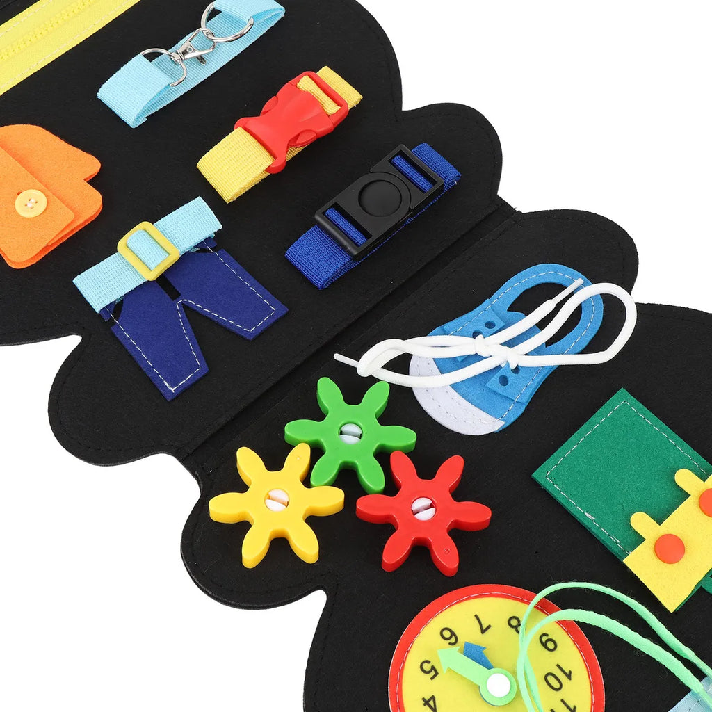 Com diversas atividades inspiradas no método Montessori, a Maleta Dino ajuda os pequenos a aprenderem tarefas do dia a dia como: